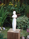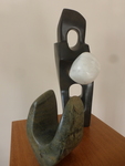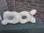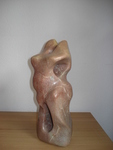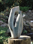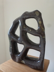 Ik ben bij het maken van dit beeld geinspireerd door de beeldhouwer Armando. Kenmerkend is de zwarte, ruwe steen. Het ruwe hakwerk, de beitelsporen duidelijk zichtbaar.