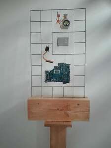 2021Samengesteld uit oude en nieuwe techniek. Aan de ene kant een hekwerk dat op de oude wijze gelast is en aan de andere kant printplaten en onderdelen van computers en telefoons. De printplaten die door geavanceerde robots gesoldeerd zijn.