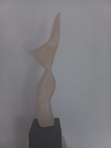 Het beeld is gemaakt van albast.